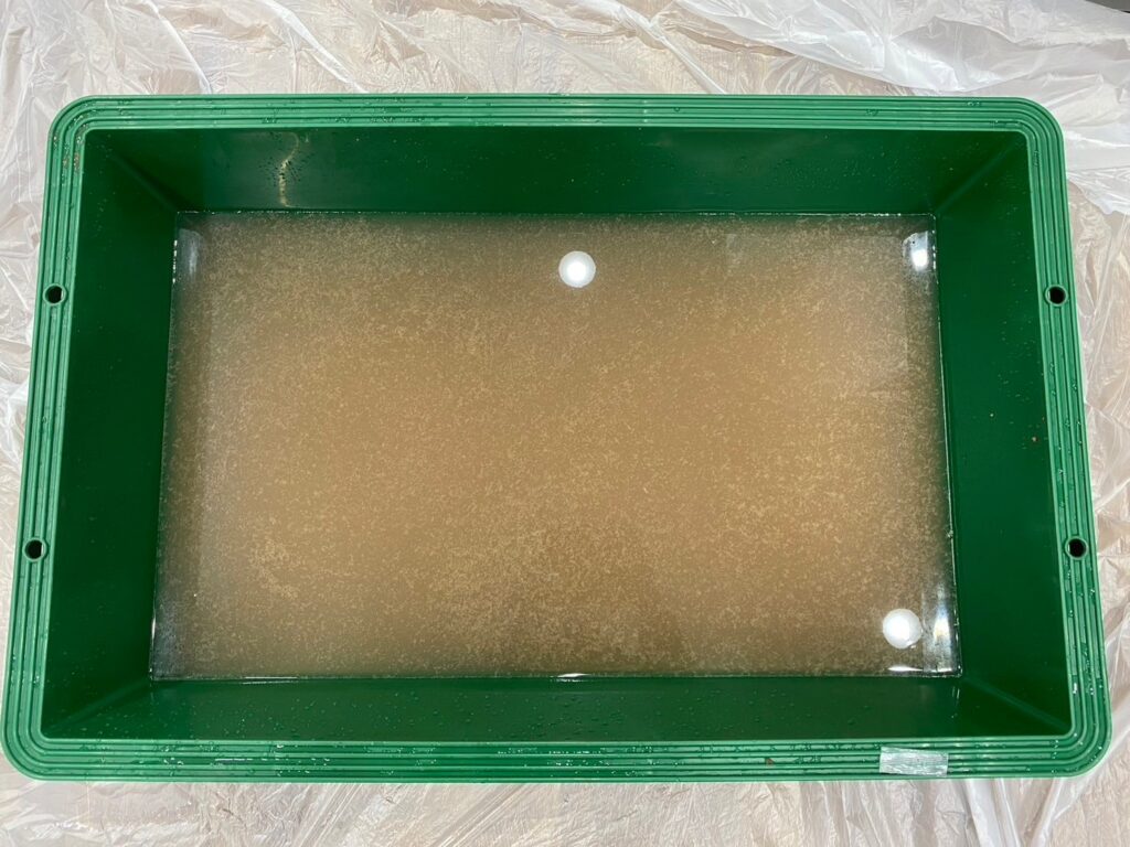 ホースの中を高圧洗浄してみるとこんなに濁った水になるのです。