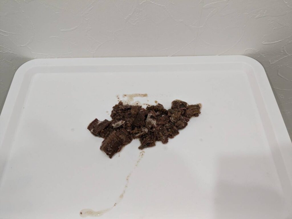 ホースの中の汚れだけでこれだけの歯石や血液の塊、その他患者さんの口腔内からとれたものです。