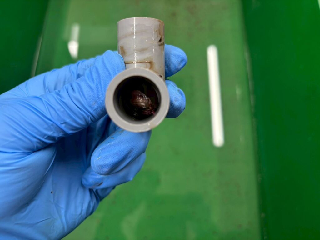 目に見えない場所で、ユニット内部の排水管は確実に汚れ、堆積し、劣化していきます。